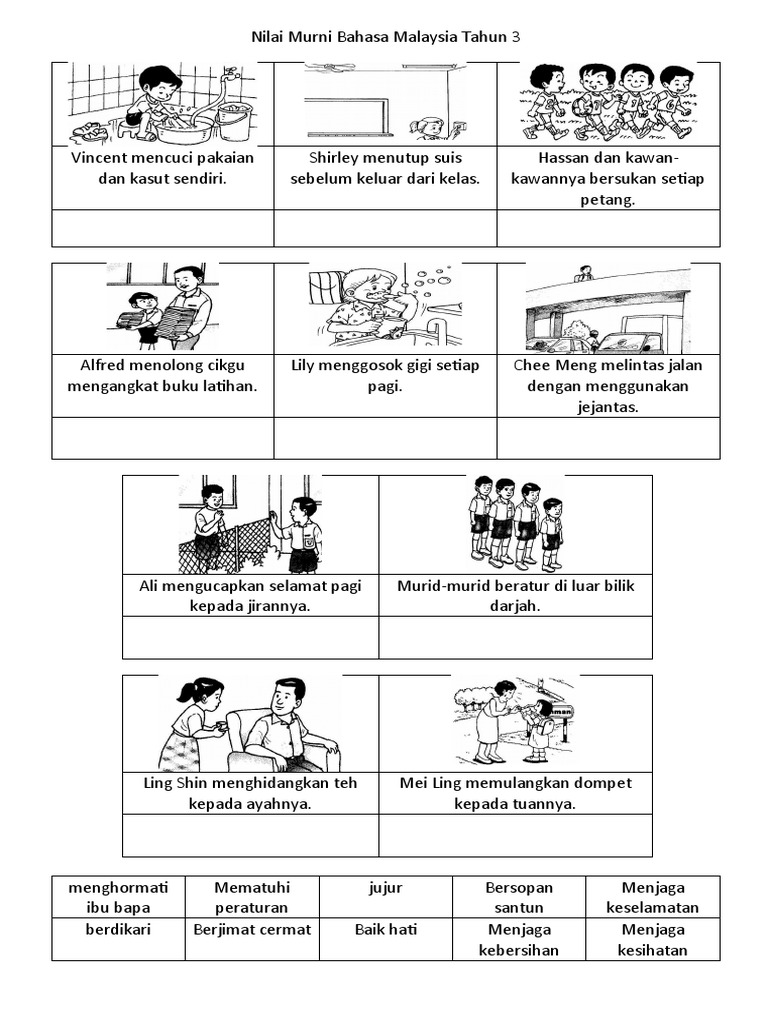 Start studying nilai murni latihan 2_2. Nilai murni ( 2 ). Kedudukan solat berjemaah bagi lelaki dan perempuan. 08 mei 2012 2 komen. Kita sepatutnya melaksanakan tugas yang diberikan dengan rasa tanggungjawab. Terima kasih kerana berkongsi ilmu. Kita seharusnya perihatin dengan keadaan dan masalah yang berlaku di sekeliling kita. 16 nilai murni by norazlin mohd rusdin 42049 views. Peraturan kelas by sitinourcheah 7919 views. Nilai dalam pantun melayu contohnya, adalah dikongsi bersama masyarakat. Bahasa melayu kertas 2 upsr. Erti keindahan dan keindahan erti dalam kesusasteraan melayu. Contoh contoh peribahasa pt3 bahasa melayu kami akan berkongsi anda beberapa contoh terbaik peribahasa pt3 yang boleh digunakan sebagai bahan rujukan anda melalui sistem aplikasi pt3 peribahasa boleh digunakan dalam.